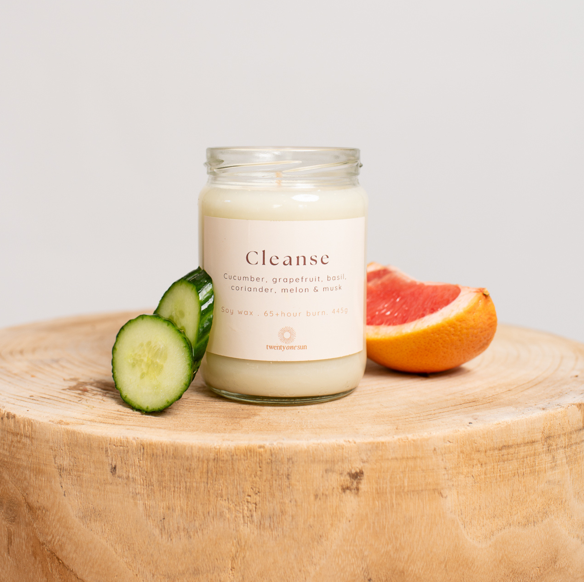 Refresh your senses with our Cleanse scented soy candle. Hand poured on the Sunshine Coast, this scent brings an uplifting feeling to any space. The bright citrus and cucumber create an invigorating aroma, while the herbal and musk undertones offer a soothing balance. Ideal for creating a fresh, clean atmosphere, it's perfect for moments of relaxation and renewal.