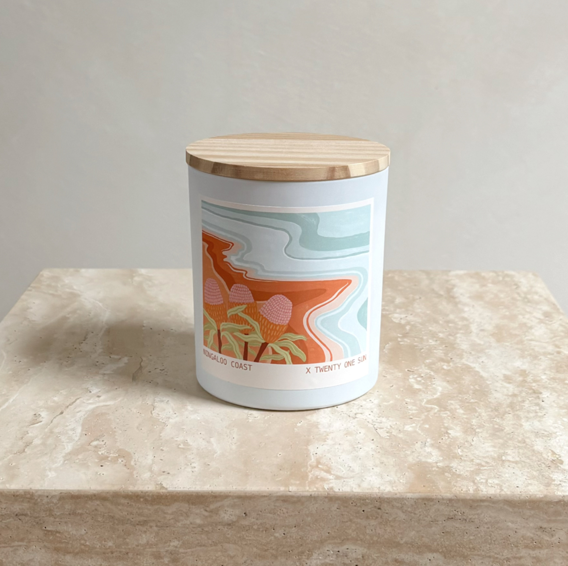 Transport yourself to the sun-drenched shores of Western Australia's Ningaloo Coast. This candle embodies warm days spent by the water’s edge, the gentle sea breeze of the Ningaloo reef and the blooming wildflowers in the region.